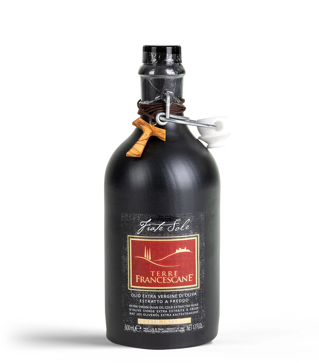 Frate Sole est une huile d'olive d'exception au parfum intense d'olives fraîches, avec des notes herbacées amères et épicées.